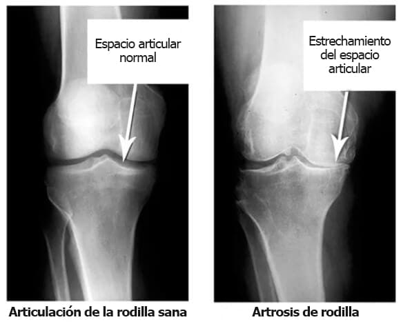 Mira estas radiografías, puedes ver que no hay cavidad articular en la radiografía de la derecha, los huesos rozan entre sí, causando fuertes dolores. Es muy difícil detener este proceso.